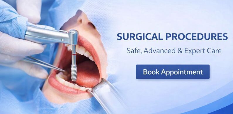 Surgical dental procedures are performed to treat complex oral health conditions that cannot be managed with routine dental care alone. At Vijay Dental Clinic, Miyapur, we provide advanced surgical treatments using modern technology to ensure precision, safety, and faster healing. Our expert team focuses on painless, minimally invasive procedures for long-term oral health and comfort.